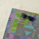 Colourful geometric shapes pattern, custom made artwork in prominent shades of green, blue, purple, pink and with additional shades of silver, grey, gold. Elegant trendy digital art design.
