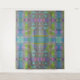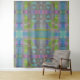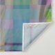 Colourful geometric shapes pattern, custom made artwork in prominent shades of green, blue, purple, pink and with additional shades of silver, grey, gold. Elegant trendy digital art design.