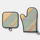 Green Blue Watercolor Pattern Oven Mitt & Pot Holder Set