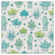 Green & Blue Watercolor Succulent Pattern Fabric