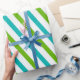 Green Blue White Stripes Modern Christmas Wrapping Paper