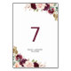 Green Blush Burgundy Floral Wedding Table Number