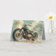 Greeting card with painting of a green Bobber motorcycle on a beach. Ideal as a birthday, anniversary, Father's Day or retirement card for motorbike enthusiast, but would also work well for other expressions or occasions.