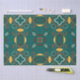 Vibrant tissue paper design featuring a seamless pattern in Moroccan style made of orange and brown ornaments on a green background.
