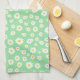 This cute and groovy kitchen towel features spring bohemian daisies on green.