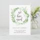This elegant botanical change of address card features a green wreath of leaves, on a clean white background. We have used art from LABFcreations.