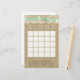 The warm inviting look of burlap with a neutral soft green ribbon and lace printed bingo card design for a fun shower game to compliment any rustic, country style baby shower or wedding shower.