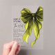 Set the tone for a chic and unforgettable celebration with these Green Bow She’s Tying The Knot Bridal Shower Acrylic Invitations. Featuring a romantic coquette-inspired chartreuse green watercolor bow, this design delivers timeless sophistication with a modern edge.