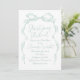 Elegant she's tying the knot bridal shower invitations feature elegant Hand Drawn Ribbon Bow with modern handwritten script fonts in light green, clean and simple. Great for modern romantic wedding, unique fun whimsical wedding, elegant casual wedding.