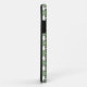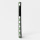 This phone case has an art deco design of triangles and diamonds that look like bowties in light green and sage green.