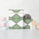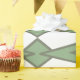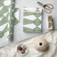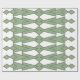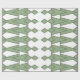 This wrapping paper has an art deco design of triangles and diamonds that look like bowties in light green and sage green.