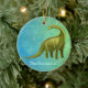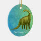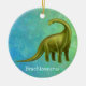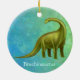 Original fine art design of a green Brachiosaurus dinosaur by artist Carolyn McFann of Two Purring Cats Studio printed on a quality and easily customisable Christmas ornament. Great gift idea for birthdays, holidays or any occasion for kids to adults!