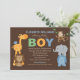 Green Brown Jungle Animals Baby Boy Shower Invitation