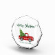Brush Script Watercolor Vintage Red Truck with Christmas Tree - Merry Christmas Photo Block