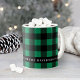 Rich green and black buffalo plaid wraps this festive mug with a custom family name displayed on a black banner accented by a heart detail. The bold green check pattern offers a fresh take on classic plaid style, perfect for the holidays or everyday use. The family name is fully editable to create a personalized gift or a cozy addition to your seasonal drinkware collection.