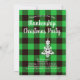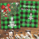 This front Christmas design features a wreath with white Christmas tree shape ornament with party template text on the back green and black buffalo plaid as a background. Personalise or remove the template text or click customise to select a font style, size, and colour you prefer.