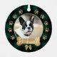Add a cosy and warm charm to your Christmas tree with our Pet photo metal ornament featuring a cosy and warm green buffalo plaid pattern background. Circle photo frame with a festive faux gold bow and bone. Customise with your pets name & photo. Designed by Moodthology Papery