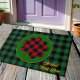 Doormats: Rustic green and black buffalo plaid pattern with Shamrock lucky clover leaf charm for your Christmas festive holidays
