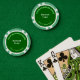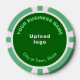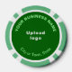 Poker chips that you can customise to put your business name, logo, city or town and state. You can use it during corporate events to advertise your business or to promote your brand name while entertaining your customers, clients or guests. Customisable poker chips that your can use to build brand name awareness while enjoying business parties. Design colours are light green texts on green background. Please check the appearance on front and back sides after uploading logo and typing texts. If the appearance is pleasing to you, you can place your order now. If you need to resize and move the logo and texts to fit on the poker chips, please change in the design tool. You can also change the font style, font colour and the inner background colour in the design tool.