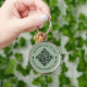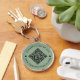 Customisable QR Code keychain, with a sage green background. To generate a new QR code on the design, add your website URL or social media handle in the " personalise this template" feature.