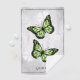 Personalise a unique towel for golfing with a Green Butterfly Floral Personalised Golf Towel. Towel design features a pair of vibrant butterflies resting on a white floral vine against a light grey grunge background. Additional gift items available with this design as well as a variety of colours.