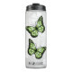 Enjoy any beverage while you're on the go with a Green Butterfly Floral Personalised Thermal Tumbler. Tumbler design features a pair of vibrant butterflies resting on a white floral vine against a light grey grunge background. Additional gift items available with this design as well as a variety of colours.
