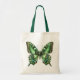 Introducing our budget tote bag featuring a captivating Green Butterfly design. The butterfly's predominantly green wings are adorned with black and white spots, while blue accents near the lower edges add a vibrant touch.