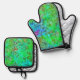 Green calming pot holder and oven mitt,Dazzling Oven Mitt & Pot Holder Set