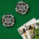 These customisable camo pattern poker chips have a metal sheriff badge on both sides with space for you to add your monogram / initials. The camouflage is in shades of green and brown. It's a great design for a person in the military, a veteran, a woman or man in law enforcement, a hunter or even a fan of popular TV shows with walking zombies / dead.