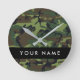 Green Camouflage Pattern, Your name, Personalise Round Clock
