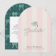 This preppy and coquette graduation announcement features a green graduation cap on a cream background with light pink stripes. Personalize it for your needs. You can find matching products at my store.