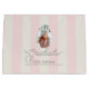 This preppy and coquette graduation gift bag features your photo with a green graduation cap on a cream background with light pink stripes. Personalize it for your needs. You can find matching products at my store.