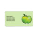 Destei's cartoon illustration of a green apple fruit on a light green background colour. There is also a personalizable text area.