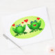 Green Cartoon Frogs Cute Red Love Hearts Oval Sticker