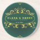 Green champagne gold vintage floral wedding coaster