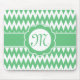 Green Chevron Pattern & Monogram Flower Mouse Mat