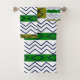Green Chevron Stripes Geometric Pattern Bath Towel Set.
