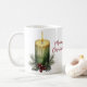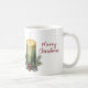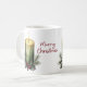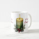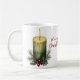 Cozy up this holiday season with a festive coffee mug featuring a glowing green Christmas candle surrounded by pine sprigs and red berries, paired with a cheerful "Merry Christmas" message. A perfect cup for winter mornings, seasonal gifting, filled with warmth and joy.