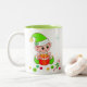 Green Christmas elf, candy cane & Christmas balls Two-Tone Coffee Mug