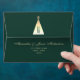 Simple, elegant, modern emerald green 5x7 envelope for winter holidays greeting cards and invitations with gold glitter inside, return address and Christmas tree monogram at the top flap.