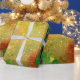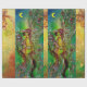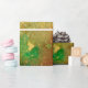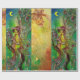 Whimsical,colourful vibrant watercolor painting with golden and silver foil in yellow,green,red colours.