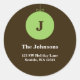 Stylish monogram Christmas address labels with a green ornament on a brown background. Select the customise button to change the font style, colour and size.