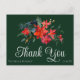 Green Christmas Poinsettia Wedding Thank You Postcard