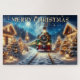 Green Christmas Train in Snowy Village Jigsaw Puzzle