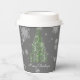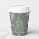 Sip your favourite Christmas time beverages with a festive set of Green Christmas Tree and Snowflakes Paper Cups. Paper cup design features a vibrant artistic Christmas tree with falling snowflakes and a dark grey background. Additional gift and holiday items available with this design as well.