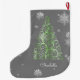 Add a festive touch to your fireplace mantle this holiday season with a Green Christmas Tree and Snowflakes Stocking. Stocking design features a vibrant artistic Christmas tree with falling snowflakes and a dark grey background with a space you can add your name for personalisation. Additional gift and holiday items available with this design as well.