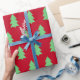 Green Christmas Tree Dark Red Wrapping Paper