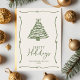 Green Christmas Tree Hand-Drawn Bow Ribbon Holiday Postcard