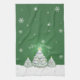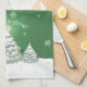 Add a holiday touch to your kitchen with this Green Christmas Tree Kitchen Towel. Towel design features a trio of snow covered decorated Christmas Trees against a green background and falling snowflakes. Additional gift and holiday items available with this design as well.