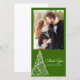 Thank your guests for gifts received after a festive December engagement party, bridal shower or wedding with the elegant Green Christmas Tree Thank You Photo Card. Change the background colour and font, if desired. This classy custom wintery thank you photocard features a swirly white xmas tree design on a green background.